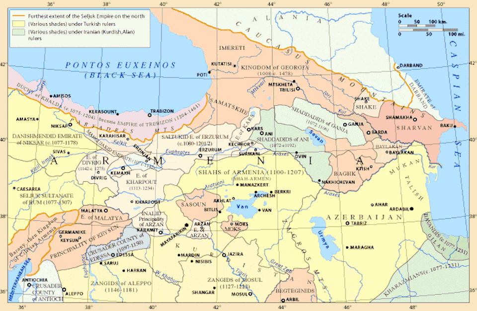 L'Arménie aux XIe et XIIe siècles, avec notamment les domaines des Cheddadides.