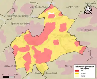 Le retrait-gonflement des sols argileux est susceptible d'engendrer des dommages importants aux bâtiments en cas d’alternance de périodes de sécheresse et de pluie. 99,5 % de la superficie communale est en aléa moyen ou fort (90,2 % au niveau départemental et 48,5 % au niveau national). Sur les 383 bâtiments dénombrés sur la commune en 2019, 381 sont en aléa moyen ou fort, soit 99 %, à comparer aux 91 % au niveau départemental et 54 % au niveau national. Une cartographie de l'exposition du territoire national au retrait gonflement des sols argileux est disponible sur le site du BRGM[23],[24].
