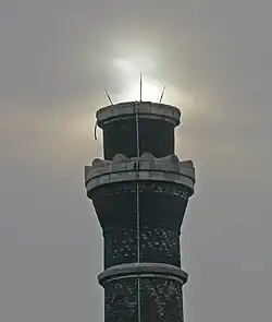 Le paysage industriel a pour figure principale la cheminée industrielle, symbolisée en beffroi du travail, qui est très haute et domine les sites. Les cheminées ont fait partie de la Révolution industrielle, signe de puissance et organe publicitaire (le nom de l'entreprise était parfois écrit dans le corps de cheminée avec des briques de couleur ; la cheminée a aussi servi de signal — sorte de clocher — des premières cités ouvrières humanistes où la cheminée d'usine ainsi que le portail se trouvaient dans l'arrangement dans leur urbanisation), avec le développement de la mécanisation dans la fabrication nécessitant de l’énergie qui ne pouvait plus provenir des moulins à eau ou à vent par la localisation des usines. Lorsque le coke a remplacé le charbon de bois, la capacité en production du fer par la sidérurgie a été multipliée. Cette puissance avait pour contrepartie une pollution aérienne non maîtrisée très nuisible à la santé de la population[note 1] et qui enlaidissait les villes par la noirceur des suies collées sur les façades d’immeubles par l’humidité. Cet aspect négatif a provoqué l’essor jugé moderne du chauffage tout électrique des 30 dernières années du XXe siècle. Les villes furent nettoyées en France dans la décennie 1960 et le smog des cheminées disparut par l’abandon généralisé de la filière houille (et les souches des cheminées devinrent le support des antennes de télévision dont elles se hérissèrent).