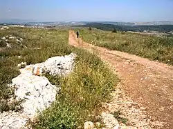 - En quittant Cana, le chemin continue presque entièrement dans une forêt et à travers des prés et des terres cultivées et se termine au faubourg de la commune agricole juive (kibboutz) de Lavi, qui est située près de la colline des « cornes de Hattin »
