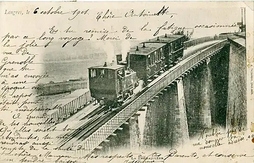 Après une tentative avortée de « funiculaire à crémaillère[6] », la municipalité de Langres obtint la déclaration d'utilité publique d'un chemin de fer à crémaillère par la loi du [7].