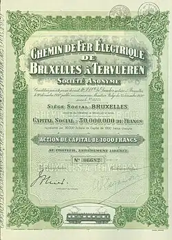 La Société du Chemin de fer électrique de Bruxelles-Tervueren a été créée le [1], à la suite d'une convention établie le [2] entre l'État Belge et la société générale de chemins de fer économiques (Chemins de Fer Économiques s.a.) affiliée à Electrobel.