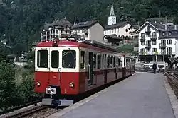 Le premier véhicule est acquis auprès de SLM Winterthur en 1904. Il s'agit d'une locomotive à vapeur, utilisée pour la pose de la voie entre 1904 et 1906. Elle a ensuite servi de véhicule de réserve jusqu'en 1927, date à laquelle elle est revendue au Tramway du Mont-Blanc (TMB) voisin. Elle a constitué le prototype des locomotives du TMB no 1 à 5, construites par SLM entre 1907 et 1911. Il s'agit de machines à deux essieux tracteurs, qui possèdent de plus une roue dentée pour les sections avec crémaillère[36]. Cette série est décrite dans l'article sur le TMB.