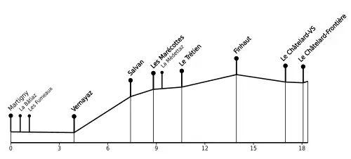 La ligne mesurait à l'origine 19,132 km jusqu'à la frontière française. Le nouveau tracé de 1931, qui évite la ville de Martigny, mesure 18,363 km[18].