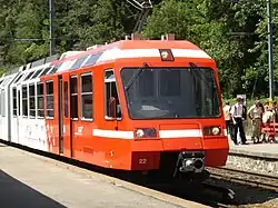 Les deux locomotives électriques à crémaillère HGe 2/2 no 2 et 3 sont livrées en 1905 et 1907. Elles sont fabriquées par SLM Winterthur ; la partie électrique est réaliée par la Compagnie pour l'industrie électrique et mécanique (CIEM). Elles sont munies de deux essieux moteurs a crémaillère, auxquels les essieux par adhérence sont reliés par des bielles[37].