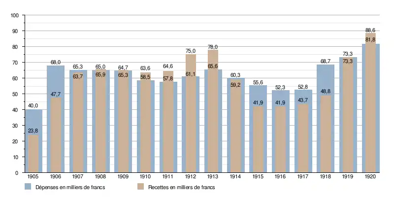 Sans être catastrophique, les résultats financiers de la compagnie n'ont jamais non plus été mirobolants. La compagnie est déficitaire durant ses trois premières années d'exploitation, puis génère un bénéfice positif jusqu'à ce qu'éclate la Première Guerre mondiale. Pendant l'entier du conflit, la compagnie est à nouveau déficitaire. Le trafic marchandises est le plus affecté par la guerre[5]. Il faut attendre 1919 pour avoir un bilan nul et retrouver les chiffres noirs en 1920. Les recettes et dépenses de la compagnie sont résumées dans le tableau ci-dessous[6]. Néanmoins, les pertes subies durant la période 1914-1918 seront fatales à la compagnie. En effet, elle est incapable d'honorer ses engagements et le Tribunal fédéral de Lausanne prononce la faillite de la compagnie NC le 21 novembre 1921. C'est alors l'État de Vaud qui reprend la propriété de la ligne en rachetant les infrastructures pour la somme de 50 000 CHF avec un droit de jouissance dès le 1er janvier 1922[5].