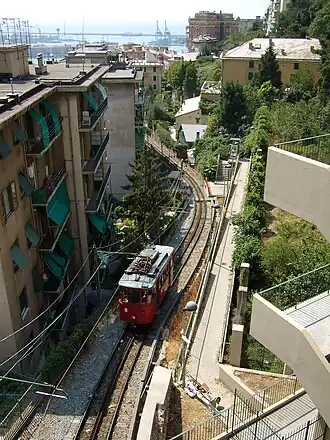 Le chemin de fer connaît une histoire mouvementée : son inauguration, prévue en 1899, est repoussée à 1901 en raison d'un accident survenu lors des essais de la ligne dans lequel des techniciens décèdent[3]. Au moment de son inauguration, il n'y avait que 3 gares le long du parcours : Principe (gare inférieure), Cambiaso (intermédiaire) et Granarolo (gare supérieure).