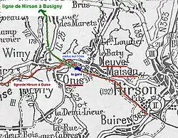 - ↑ « N° 38134 - Loi qui déclare d'utilité publique l'établissement du chemin de fer à voie étroite de Guise à Wimy et à Hirson, et approuve la convention provisoire passée, le 4 juillet 1899, entre le ministre des Travaux publics et la compagnie des chemins de fer du Nord : 12 avril 1900 », Bulletin des lois de la République Française, Paris, Imprimerie Nationale, xII, vol. 60, no 2164, , p. 2189 - 2192 (lire en ligne).