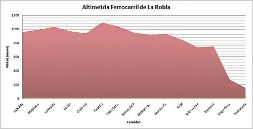 Le chemin de fer de La Robla traverse les provinces de León, Palencia, Région cantabrique, Burgos et de Biscaye. Vu son influence économique et sociale, sur une période de plus d'un siècle, le chemin de fer de La Robla est considéré comme une des lignes les plus emblématiques d'Espagne[6].