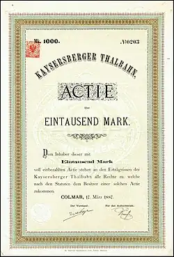 À son lancement la ligne est exploitée par Krauss & Cie[8]. Dès 1887, celle-ci décide de se séparer de la ligne, qui est vendue à la Kaysersberger Thalbann (KTB), société par actions au capital de 1 320 000 marks créée le et dont le siège est à Colmar. Celle-ci doit exploiter non seulement cette ligne, mais également les lignes Colmar-Wintzenheim, Colmar-Port de Horbourg et Horbourg-Marckolsheim. Elle se sépare toutefois de ces deux dernières dès 1890[10].