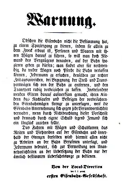 - ↑ Libellé reprenant le titre de l'acte officiel accordant à de Gerstner le privilège « pour l'établissement d'un chemin de fer et en bois entre la Moldau et le Danube »