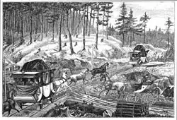 - ↑ Le procès-verbal dressé à Kaplitz (22 novembre 1825) indique : " Que les deux poutres, partie en pin partie en sapin, épaisse de 7 pouces, larges de 6 pouces, formant le chemin, disposées parallèlement à 3 1/2 pieds de Vienne l'une de l'autre, réunies de toise en toise par des traverses de mêmes dimensions placées plus bas, garnies de rails forgés, de 2 pouces de large sur 4 lignes d'épaisseur, reposant sur des murs en pierre sèche, dont la hauteur varie selon le niveau."