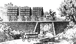 - ↑ Le premier rapport sur la situation de l'entreprise - 30 mars 1826, indique : "...deux murs de pierre en pierres sèches construits au milieu de ces remblais, et sur lesquels on poserait le chemin, lui fourniraient un fondement parfaitement solide et assureraient par conséquent sur tout le maintien de son niveau."