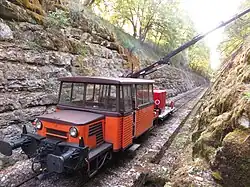 La 040 T 17 SACM à flanc de falaise au dessus de la vallée de la Dordogne à la halte de Mirandol. | |