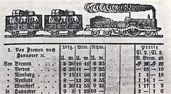 Le 23 janvier 1862, la ligne de Brême est à nouveau prolongée jusqu'à Geestemünde/Wesermünde (aujourd'hui Bremerhaven) avec Brême[12].