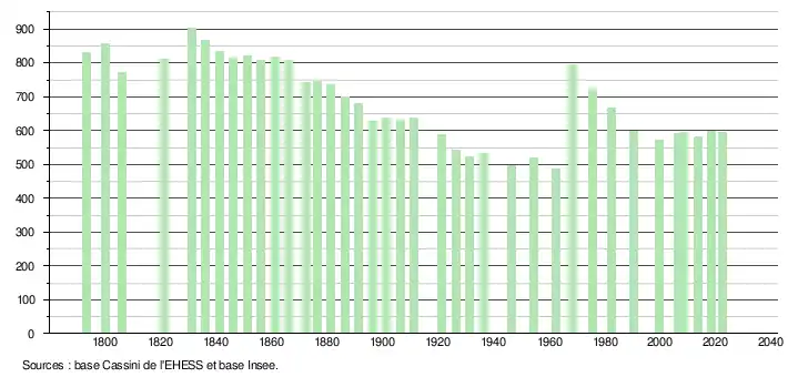 - ↑ Population municipale de référence en vigueur au 1er janvier 2025, millésimée 2022, définie dans les limites territoriales en vigueur au 1er janvier 2024, date de référence statistique : 1er janvier 2022.