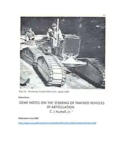 - ↑ (en) C. J. Nuttall Jr., « Some notes on the steering of tracked vehicles by articulation. », Journal of Terramechanics Volume 1, Issue 1, 1964, , p. 38-74 (lire en ligne [PDF])