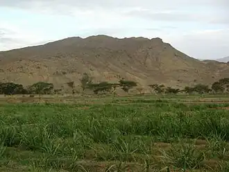 En contrebas, des rizières et des champs de canne à sucre enserrent la ville grâce à l'irrigation sans laquelle il n'y aurait qu'une pampa désertique.