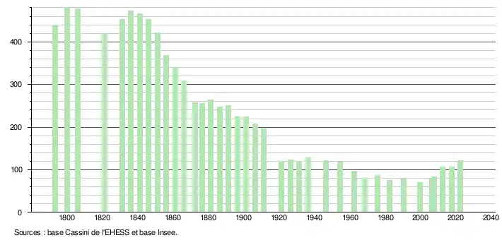 - ↑ Fiches Insee - Populations de référence de la commune pour les années 2006, 2007, 2008, 2009, 2010, 2011, 2012, 2013, 2014, 2015, 2016, 2017, 2018, 2019, 2020, 2021 et 2022.