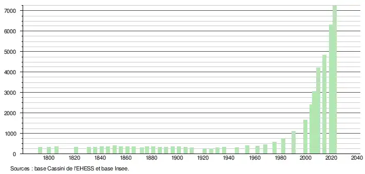- ↑ Fiches Insee - Populations de référence de la commune pour les années 2006, 2007, 2008, 2009, 2010, 2011, 2012, 2013, 2014, 2015, 2016, 2017, 2018, 2019, 2020, 2021 et 2022.