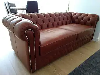 Le chesterfield est un modèle de fauteuil et de canapé de style anglais qui date probablement de la fin du XVIIIe siècle. Le recouvrement est un capiton généralement de cuir mais comme le fauteuil club, il s'est paré de velours et plus récemment d'autres tissus. Le rembourrage est à l'origine fait de crin ou de bourre de soie et de plume d'oie pour les coussins, de nos jours la mousse polyester vient les remplacer. La richesse des matériaux utilisés (cuirs, tissus nobles, bois) et la complexité de la réalisation des canapés et fauteuils chesterfield rend leur prix d'achat élevé. En effet pour le capitonnage une première toile est cousue afin de donner la forme de chaque capiton et de faciliter la mise en place du recouvrement nécessitant plus de matière et de main d'œuvre que pour la réalisation de canapés en cuir tendu.