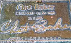 Chet Baker repose au Inglewood Park Cemetery (en) d'Inglewood en Californie.