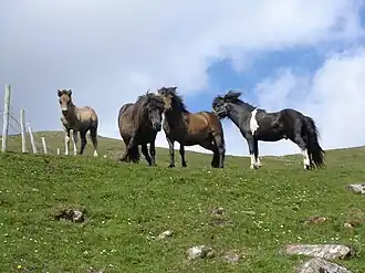 Poneys danois en pâture sur l'île de Bornholm | |