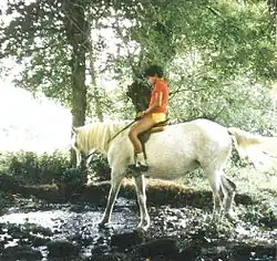 Le développement de l'équitation sur poney, sous l'influence des anglo-saxons, rapproche les enfants du monde du cheval dès leur plus jeune âge. En France, les poneys font partie intégrante du programme des classes vertes dès les années 1970. Cette tendance est significative de la démocratisation de l'équitation[93]. Le nombre de cavaliers connaît une progression spectaculaire, passant de 30 000 après la Seconde Guerre mondiale à 620 000 en 2001, dont 432 500 sont licenciés de la fédération française d'équitation[94], porté notamment par la recherche du contact avec l'animal et la nature[95]. Les constructions de paddocks en Angleterre, pour soutenir la horsiculture des néo-ruraux, devient très importante dès la fin des années 1970[96].