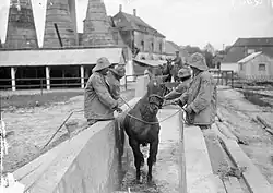 En France, un chef de service vétérinaire est chargé de surveiller l'hygiène, d'organiser les dépôts et de superviser les achats et réquisitions d’animaux, mais le manque d'effectifs et de moyens font que les soins restent souvent insuffisants[55]. Pour pallier ces lacunes, des sociétés civiles d'assistance aux animaux, comme The Blue Cross, épaulent les militaires français[B 6]. En janvier 1919, un militaire de la 7e division d'infanterie reçoit une décoration pour « actes de dévouement aux animaux », probablement des chevaux[B 5].