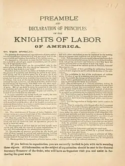 Formé par Terence Powderly, les Chevaliers du Travail s’organisent. À leurs premiers balbutiements, les « Knights of Labor » représentent le nom d’une centrale syndicale sous forme de société secrète. Au Québec, ce type d’organisation est qualifié d'« union de cuisines », car les rencontres entre membres se faisaient souvent dans les cuisines.