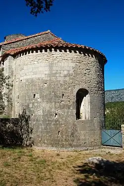 Le chevet plat caractéristique de l'architecture wisigothique se retrouve ensuite dans les chapelles relevant de l'architecture préromane de tradition wisigothique telles Saint-Laurent de Moussan et Saint-Nazaire de Roujan.