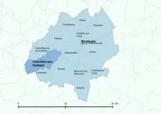 - ↑ « Rattachements administratifs de la commune de Chevillon-sur-Huillard », sur le site de l'Insee (consulté le ).