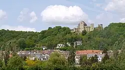 L'église Saint-Martin et le bourg de Chevreuse vus du château de la Madeleine. | |||||