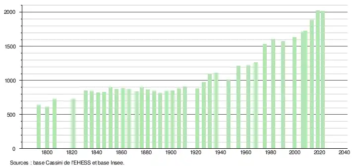 - ↑ Fiches Insee - Populations de référence de la commune pour les années 2006, 2007, 2008, 2009, 2010, 2011, 2012, 2013, 2014, 2015, 2016, 2017, 2018, 2019, 2020, 2021 et 2022.