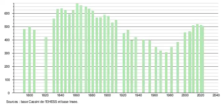 - ↑ Fiches Insee - Populations de référence de la commune pour les années 2006, 2007, 2008, 2009, 2010, 2011, 2012, 2013, 2014, 2015, 2016, 2017, 2018, 2019, 2020, 2021 et 2022.
