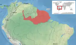 Cette espèce se rencontre au Brésil, au Guyana, en Guyane, au Suriname, dans le sud-est de la Colombie et au Venezuela[1].