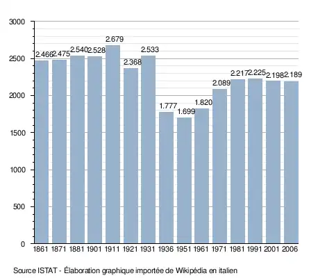 - ↑ (it) Popolazione residente e bilancio demografico sur le site de l'ISTAT.