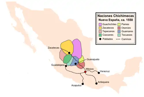 Au XVIe siècle, après avoir conquis l'Empire aztèque, les Espagnols s'efforcèrent de consolider l'emprise de la Nouvelle-Espagne sur les peuples indigènes du Mexique. Les tentatives de Nuño Beltrán de Guzmán pour asservir les populations autochtones du nord du Mexique ont provoqué la rébellion Mixtón (1540-1541) au cours de laquelle les tribus chichimèques ont résisté aux forces espagnoles. Un certain nombre de groupes ethniques de la région se sont alliés contre les Espagnols, et la colonisation militaire du nord du Mexique est maintenant connue sous le nom de guerre chichimèque (es) (1550-1590).