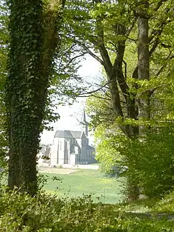 Le village et l'église de Chiddes vus de l'est, de la vallée du ruisseau du Tillot. | |