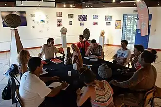 - ↑ Rédaction Tahiti Infos, « Aujourd'hui à la Maison de la Culture : table ronde sur le thème de la sculpture », Tahiti Infos, (lire en ligne)
