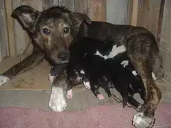 La gestation dure entre cinquante-neuf et soixante-trois jours. L'alimentation doit être modifiée le deuxième mois. Quelques jours avant la mise bas, qui dure en moyenne 10 heures, la femelle prépare un endroit et s'agite. Lors de la mise bas, la chienne s'occupe des chiots au fur et à mesure de leur arrivée, coupant le cordon ombilical et mangeant le placenta : ceci est nécessaire à la lactation.