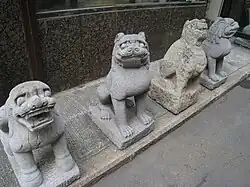 De nombreuses statues chinoises de Lion gardien existent. Elles sont souvent appelées « Chiens Fu », « Chiens de Foo », « Lions de Fu » « Lions de Fo », ou encore « Chiens-lion ». Les lions d’aujourd’hui ne sont pas originaires de cette partie de la Chine, excepté peut-être de l’extrême ouest. Cependant, leur existence était bien connue, et le symbolisme associé ainsi que les idées sur les lions étaient familiers. Toutefois, en Chine, les représentations artistiques des lions ont tendance à ressembler à des chiens. En effet, « le « lion » que l'on voit représenté dans les peintures chinoises et dans la sculpture ressemble peu à l'animal réel, qui pourtant joue un rôle important dans le folklore chinois[14]. » Les raisons pour lesquelles les « Lions gardiens » sont référencés comme « chiens » dans les cultures occidentales sont peut-être obscures, pourtant le phénomène est bien connu.