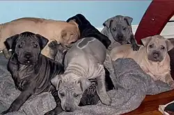 Chien thaïlandais à crête dorsale noir.- Chiens thaïlandais à crête dorsale bleus présentés dans une exposition canine en Estonie.