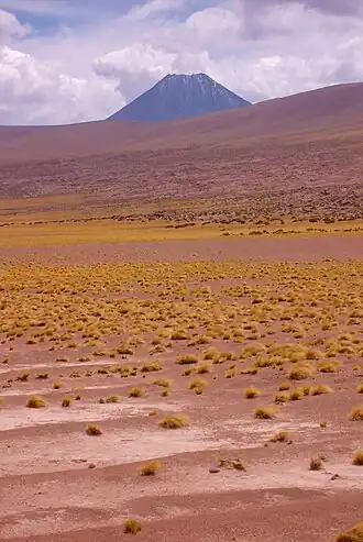 Vue du Chiliques depuis la Laguna Miscanti au sud. | ||