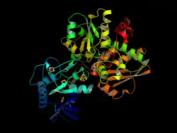 - ↑ (en) T. Takano, « Structure of myoglobin refined at 2.0 Å resolution: II. Structure of deoxymyoglobin from sperm whale », J. Mol. Biol., vol. 110, no 3, , p. 569–584 (ISSN 0022-2836, DOI 10.1016/S0022-2836(77)80112-5).