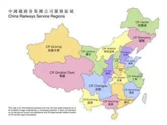 China Railway dirige 21 compagnies filiales qui gèrent le réseau différentes régions de Chine.