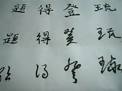De très nombreux styles de calligraphie chinoise furent développés au cours des siècles, tels l'écriture des sceaux (篆書, sceau-écriture), l'écriture cursive (草書), l'écriture des clercs (隸書) et l'écriture régulière (楷書, soit kǎishū ou écriture standard).