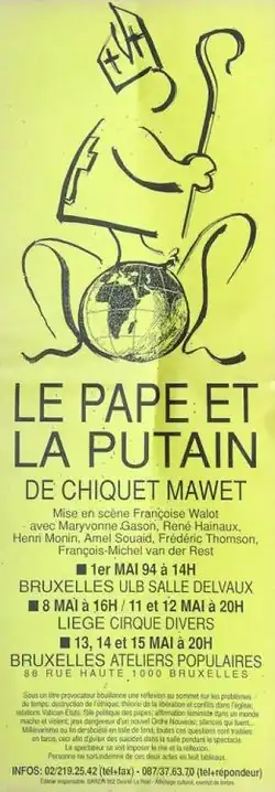 - ↑ Le Pape et la putain, Archives et musée de la littérature, Communauté française de Belgique, Asp@sia, annuaire du spectacle, lire en ligne