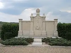 Monument aux morts: Monument aux morts, œuvre d'Hubert Paquelet, sculpteur à Pontanevaux (Saône-et-Loire),1927. le monument aux morts de la Première Guerre mondiale est situé au cimetière; c'est une stèle en triptyque, en calcaire à entroques, surmontée d'une croix de guerre sculptée[21].