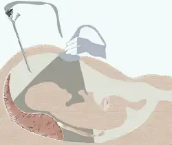 Intervention par hystérotomie.Illustration simplifiée.